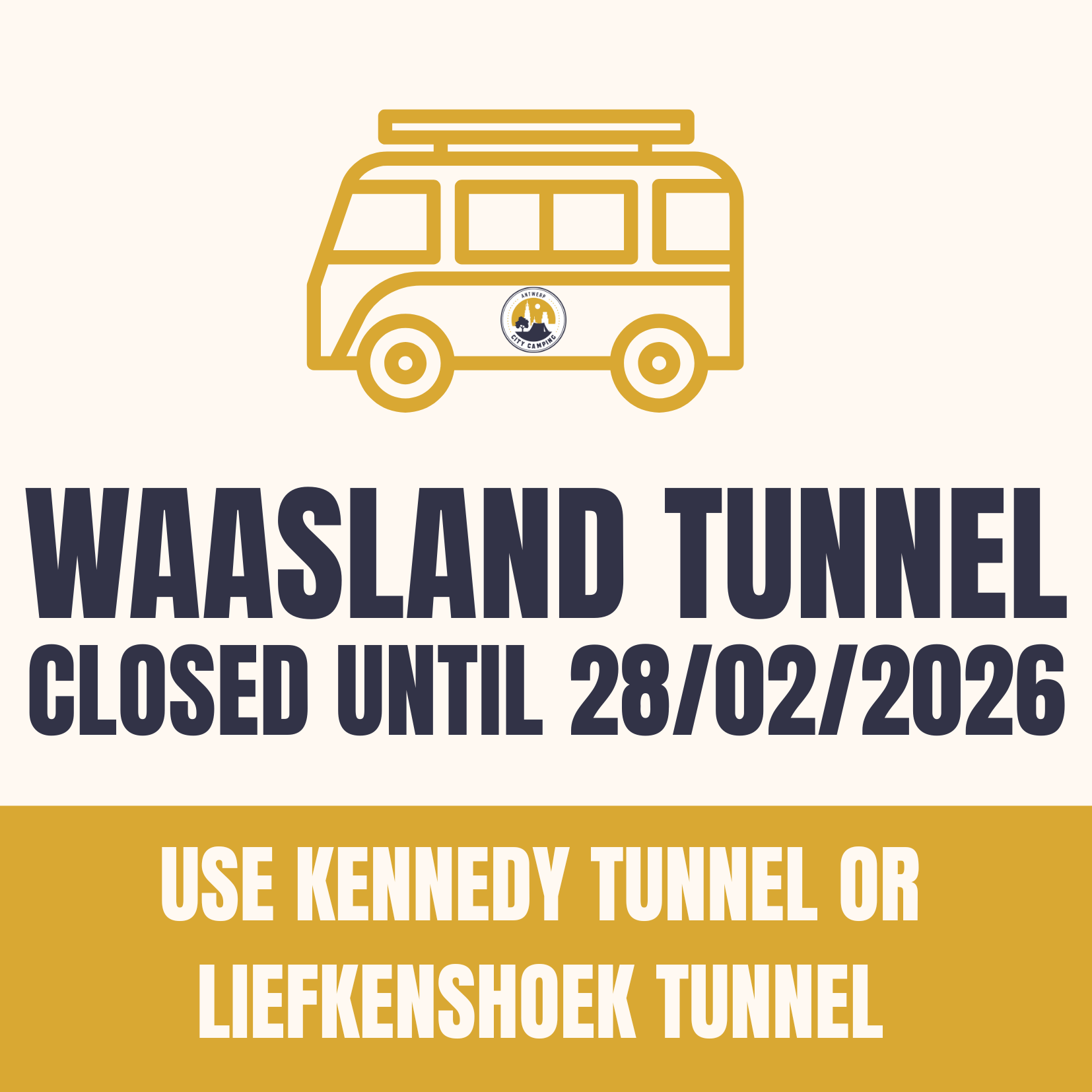 Je kan onze camping bereiken via de Kennedytunnel en de Liefkenshoektunnel.